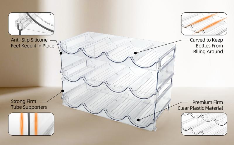 Water Bottle Organizer - 3 Pack Clear Stackable Bottle Storage Rack and Wine Rack for Bottles and Other Tumbler Organizer for Kitchen Cabinets, 3 Tier Hold 12 Home Organizer